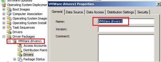 Add Apply Driver Package into the Task Sequence, choose previosly created VMWare driver package and check: "Select the mass storage driver within the package that needs to be installed before setup on Pre-Vista operating systems"